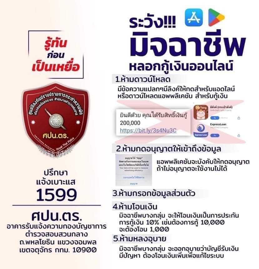 แอพกู้เงินเถื่อน หลอกให้กดลิ้งดาวโหลด