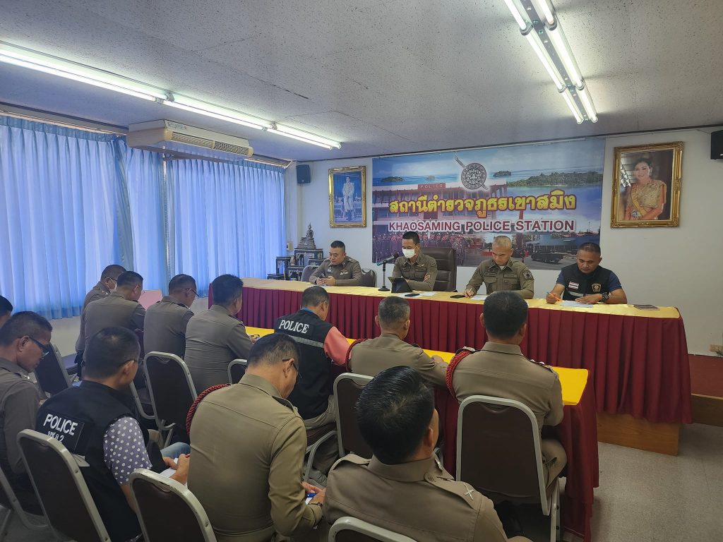 เมื่อวันที่ 17 พ.ค.67เวลา 10.00 น. พ.ต.อ.มาโนต หวังสู้ศึก ผกก.สภ.เขาสมิง พร้อมข้าราชการตำรวจสภ.เขาสมิง ได้ร่วมประชุมบริหารสภ.เขาสมิง ครั้งที่ 5/67 เพื่อแจ้งข้อราชการต่างๆปัญหาข้อขัดข้องในการปฏิบัติหน้าที่ และกำชับข้าราชการตำรวจทุกนายตรวจสอบในพื้นที่ที่รับผิดชอบอย่าให้มีบ่อนการพนันโดยเด็ดขาด