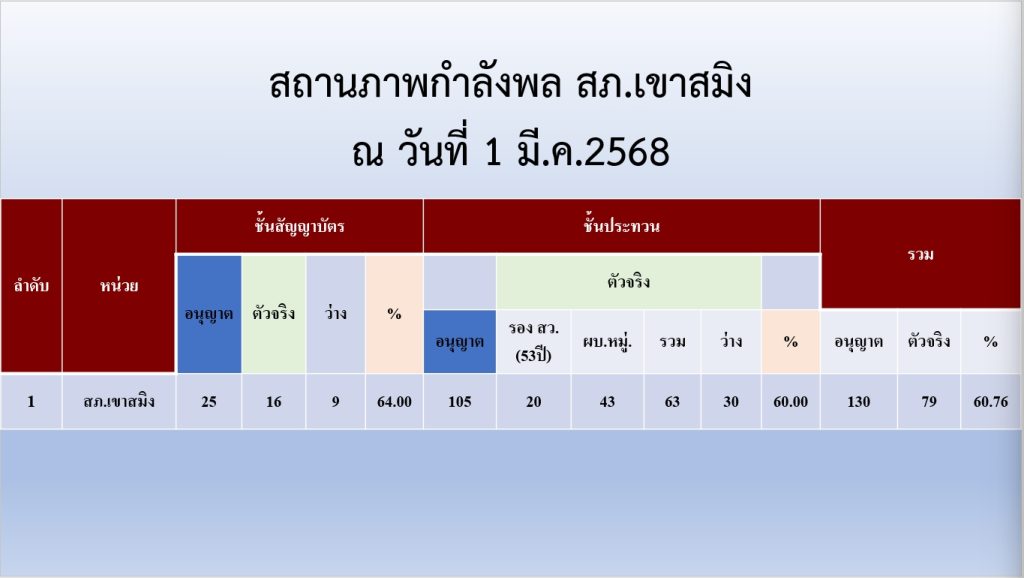 ข้อมูล ณ วันที่ 1 มีนาคม 2568